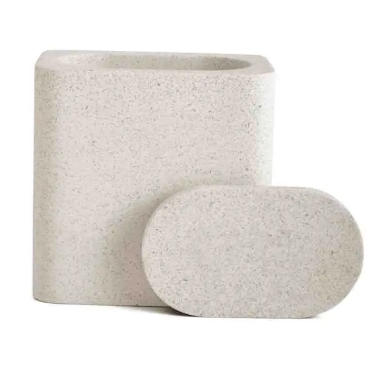 Pote Retangular em poliresina off white com tampa